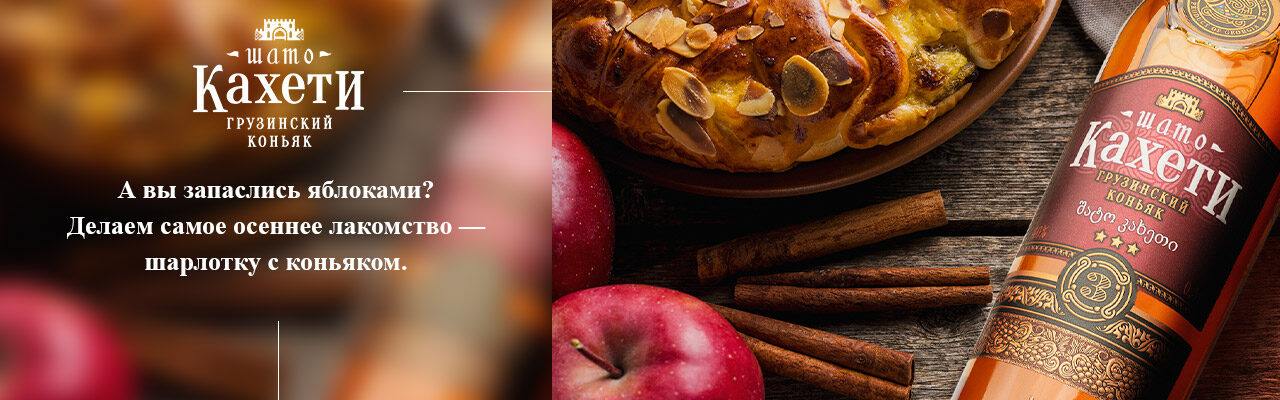 Дорогие друзья, мы уже не раз говорили о том, что осень — это время коньяка. И пока мы ещё не проводили осень, давайте сделаем это время слаще и приготовим простое семейное лакомство — шарлотку с коньяком. Шарлотка — традиционный яблочный десерт, а яблоки осенью, пожалуй, один из самых желанных и ароматных фруктов, доступных в большом количестве и разнообразии. Яблоки напоминают о прошедшем тёплом лете, долго хранятся и не теряют своих вкусовых качеств. Благородный грузинский коньяк Шато Кахети обязательно должен составить им пару, как в качестве превосходного напитка к сладкому блюду из яблок, так и в качестве дополнительного «секретного» ингредиента, ведь с коньяком всё вкуснее!